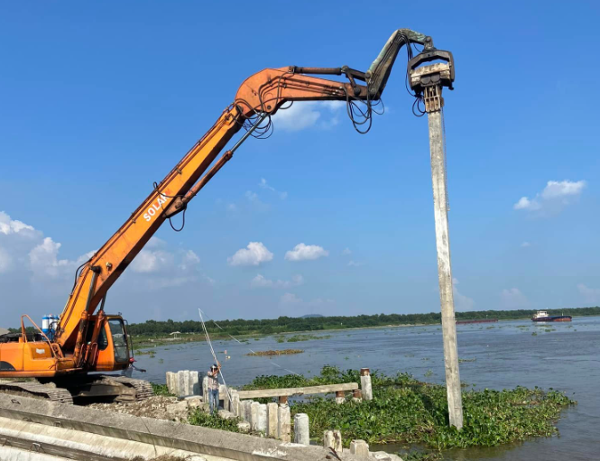 Bạn đang cần gia cố bờ kè, bờ sông, khục vực có nền đất yếu ?bạn đang tìm đơn vị có búa rung chuyên thi công ép cọc tại Hồ chí minh, Đồng nai, Long an, Bình dương.
